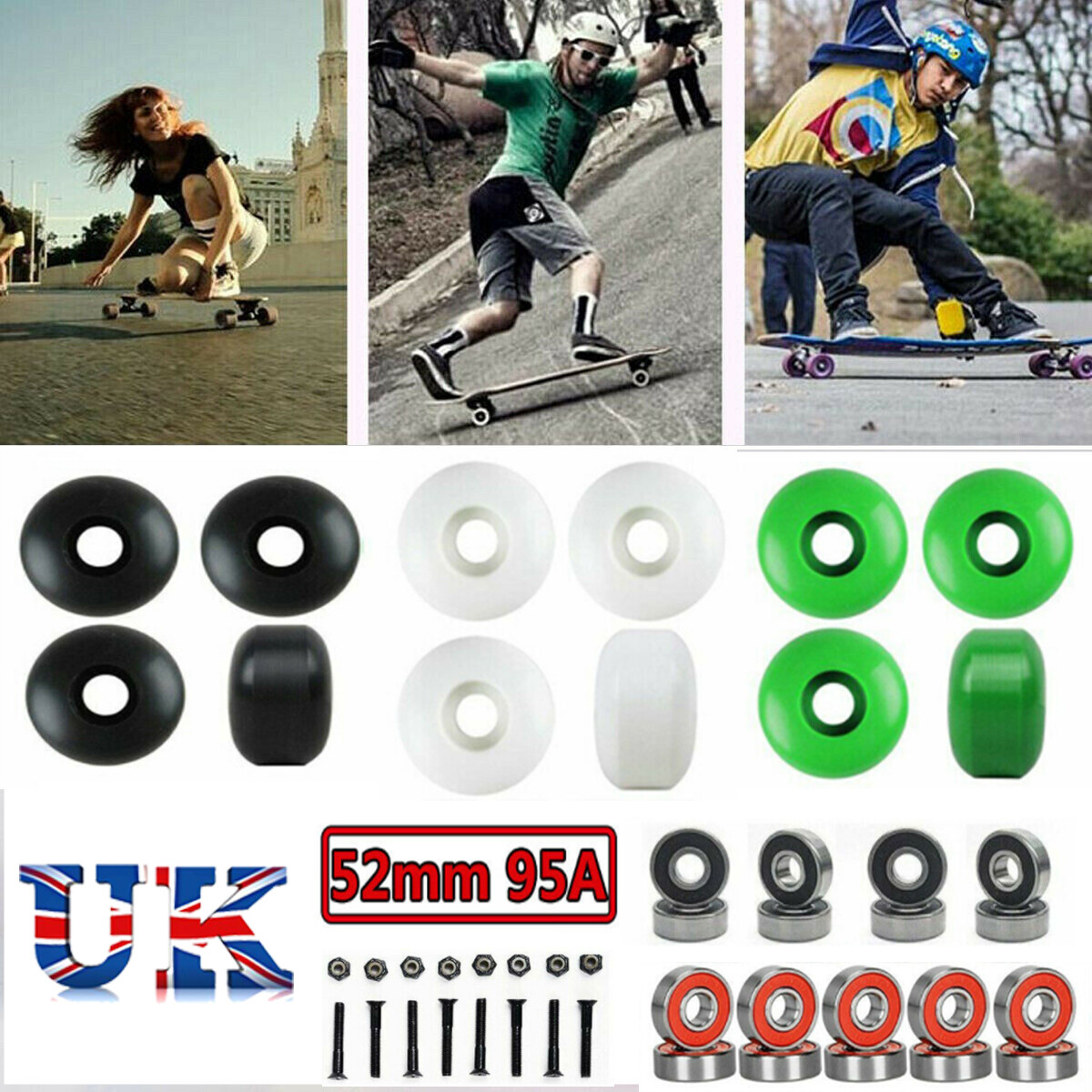 - Skateboarding 4pcs Skateboard Longboard Wheels 52mm 95a Abec 9 Bearing Truck Hardware Kit Uk Quintocolor Cl